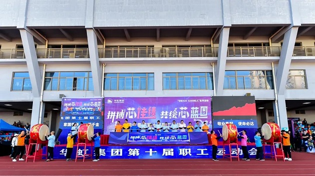 此次運動會開幕儀式環節特邀各單位職工代表一起參與,8位鼓手一同擂響大鼓,代表萬名華虹人展現向著年度目標沖刺的決心。