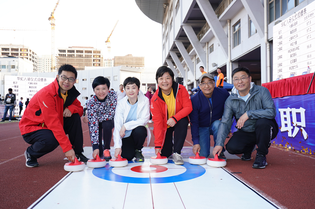 競賽講求團隊默契配合和策略。一片冰“芯”項目是為迎接2022年北京冬奧會特別設置的旱地冰壺比賽,廣受大家的歡迎。領導嘉賓們現場組成“神秘嘉賓A隊”、“神秘嘉賓B隊”,加入到13支隊伍的淘汰PK賽中,增加了比賽的懸念。經過多輪PK,“神秘嘉賓A隊”超強發揮,以關鍵一球逆轉,力壓對手,成功奪冠。上海華力1隊、集團總部隊、華虹宏力2隊分獲項目第二、三、四名。